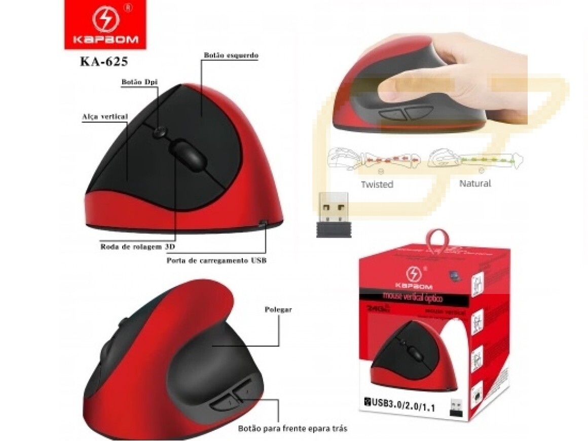 - Mouse Vertical Ergonômico Recarregável KAPBOM KA-625