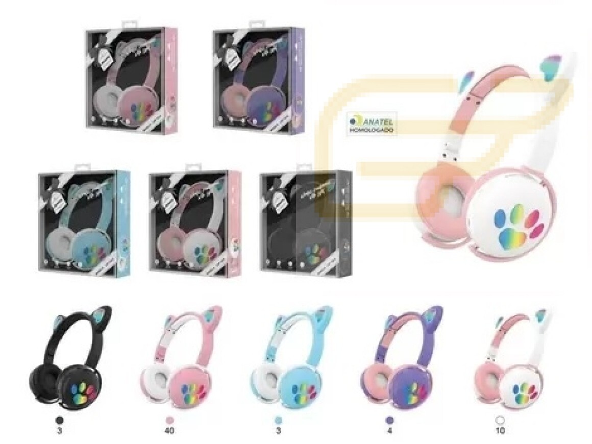 FONE DE OUVIDO BLUETOOTH ORELHA DE GATO E PATAS EM LED LEHMOX LEF-1018
