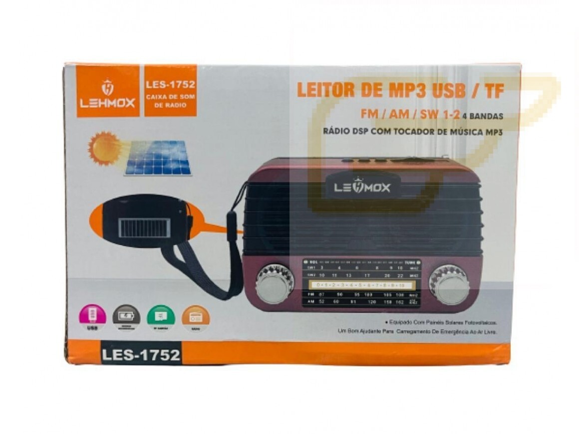 CAIXA DE SOM BLUETOOTH RETRO COM PAINEL SOLAR LEHMOX LES-1752