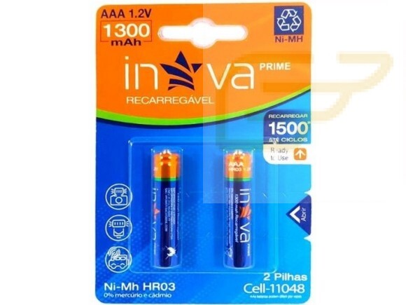 KIT 2 PILHAS AAA 1.2V RECARREGAVEL 1300MAH INOVA CELL-11048