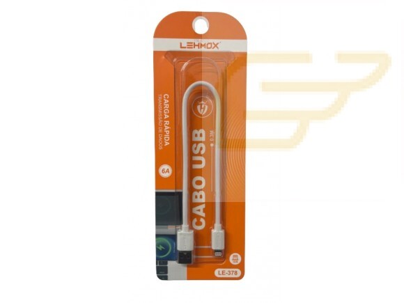 CABO USB LIGHTNING 30 CM CARGA RAPIDA 6A LEHMOX LE-378
