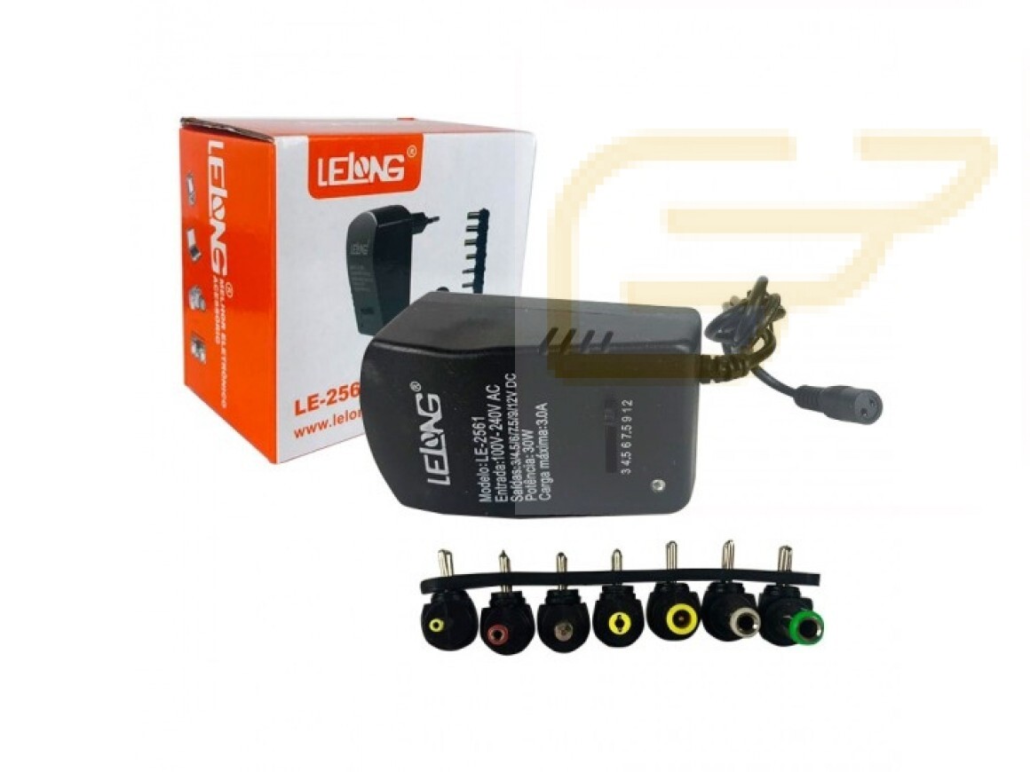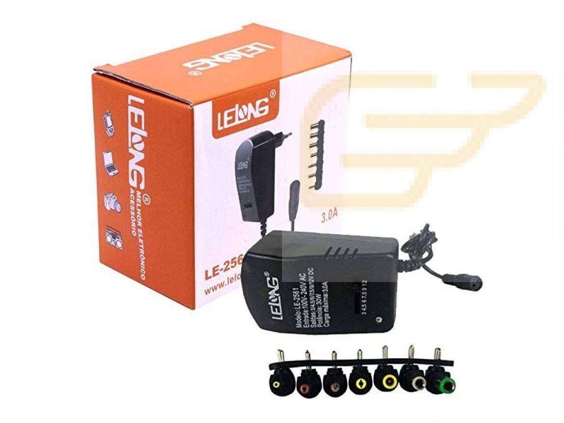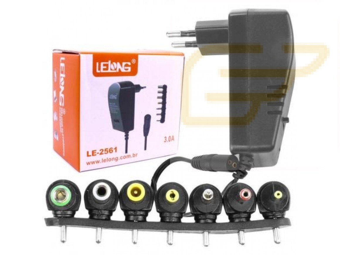 Fonte Carregador Chaveada Regulável Universal LE-2561 Lelong 3V a 12V e 3A com 7 Plugues Disponíveis
