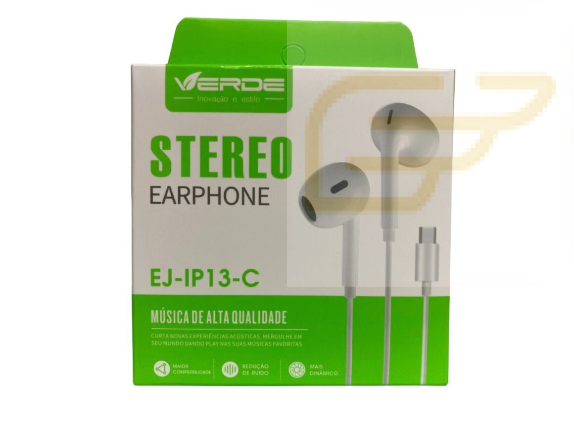 FONE DE OUVIDO TIPO C VERDE EJ-IP13-C