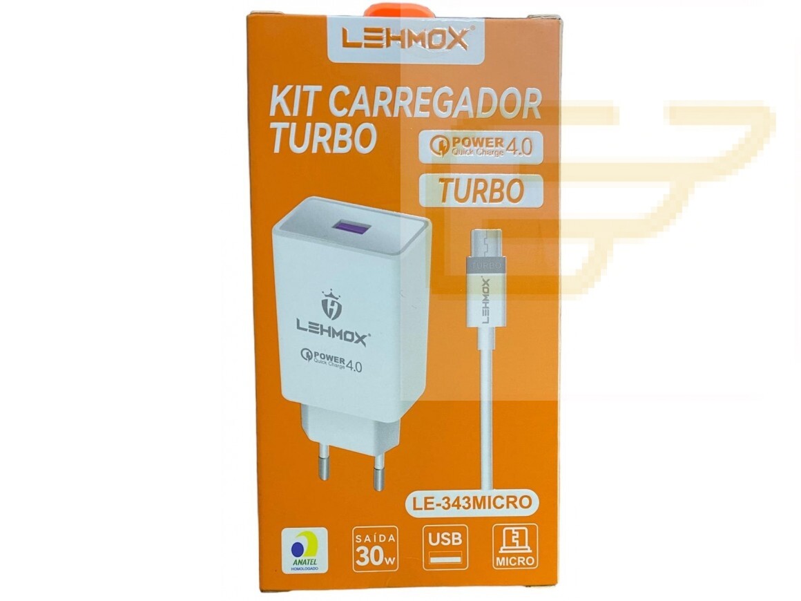 CARREGADOR TURBO MICRO USB V8 LEHMOX LE-343MICRO