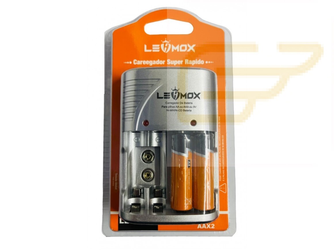 KIT CARREGADOR DE PILHA + 2PILHAS AA RECARREGAVEL 2600MAH LEHMOX LEY-2050
