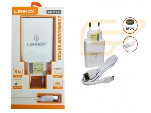 CARREGADOR RAPIDO USB/ USB C 3.1A LEHMOX LE-510-4