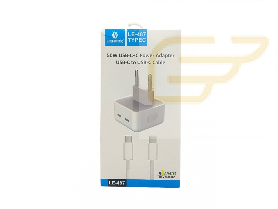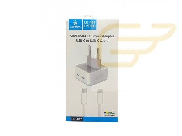 CARREGADOR TURBO USB TIPO C/TIPO C COM 2 ENTRADAS LEHMOX LE-487