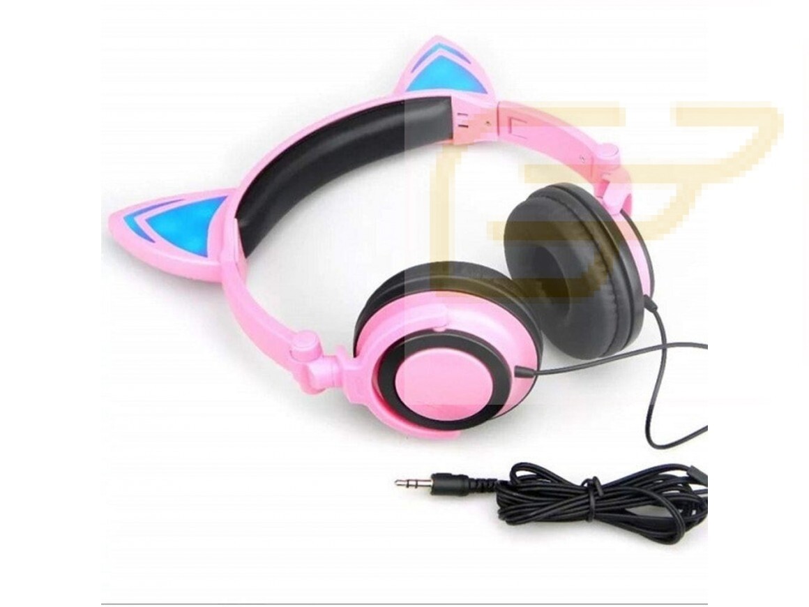 Headphone de orelhas de gato com pisca de led para jogos e musica adulto e criança.