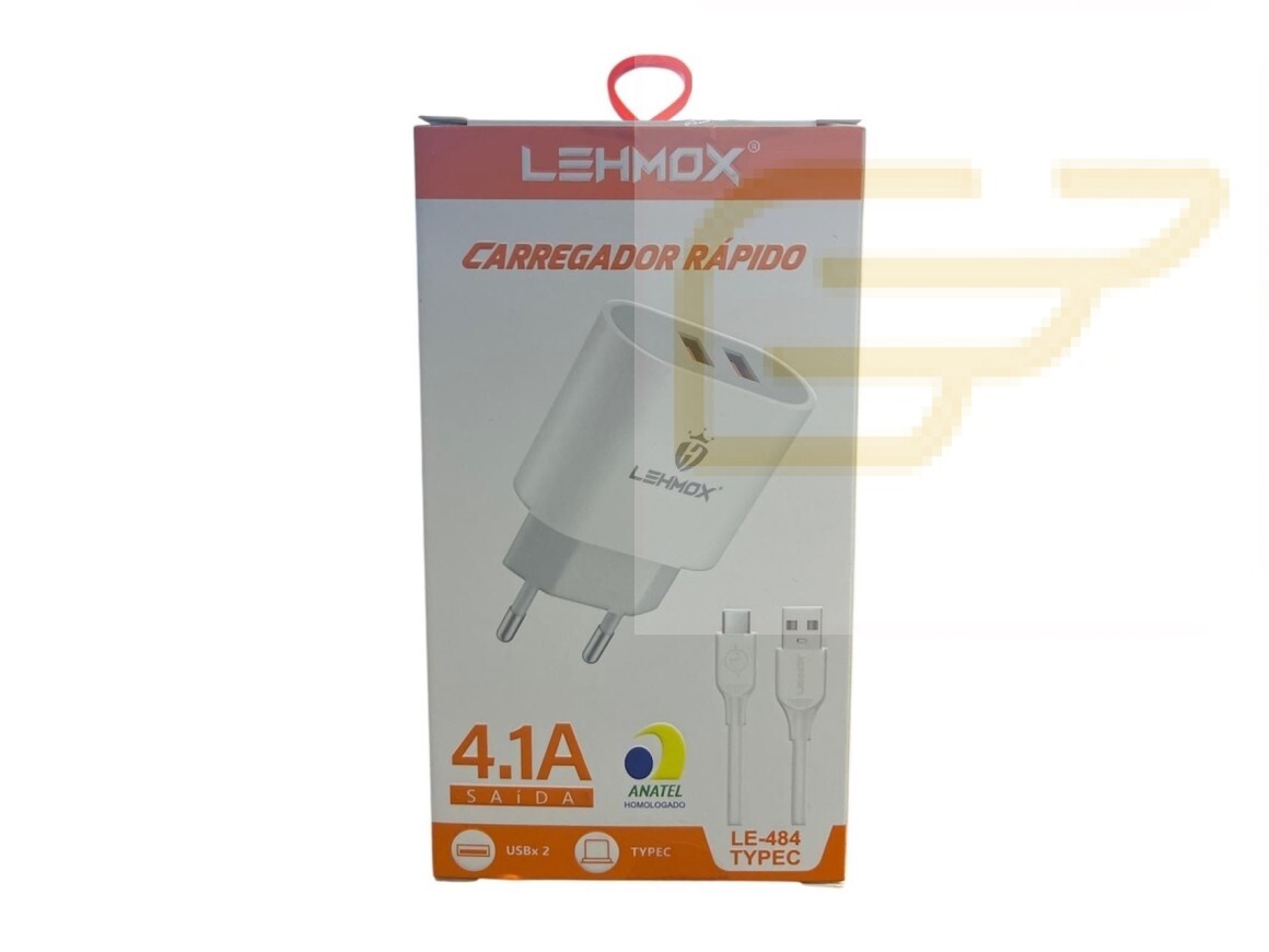 CARREGADOR RAPIDO 2 USB 4.1A TIPO C LEHMOX LE-484TYPEC