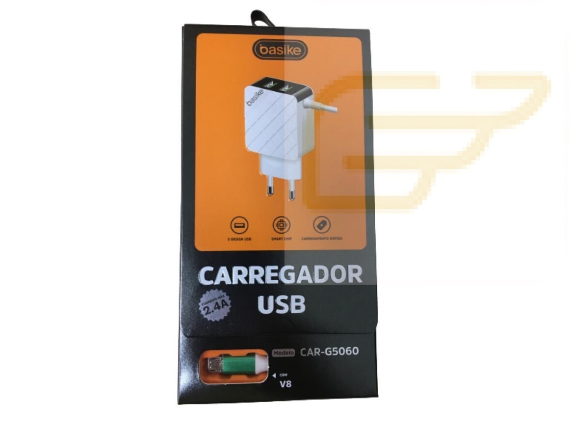 CARREGADOR USB V8 2.4A BASIKE 2 PORTAS USB CAR-G5060