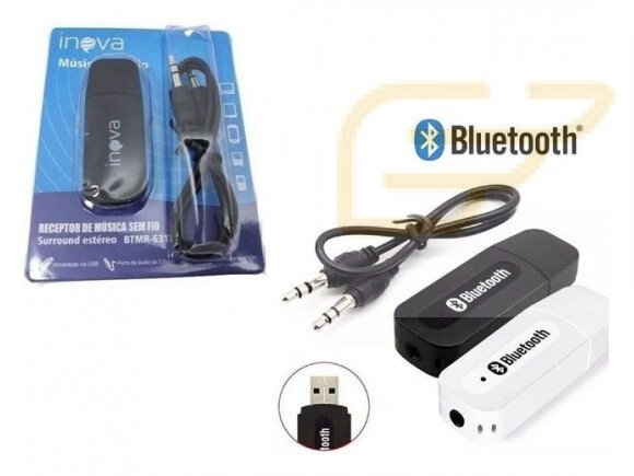 Receptor Bluetooth P2 Auxiliar – Permite transmitir áudio via Bluetooth para qualquer equipamento de som. – Pode ser utilizado para transmitir som do celular / tablet / computador a uma distância de até 10 metros sem fio. – a entrada usb funciona apenas como fonte de alimentação para o receptor, sendo que pode ser utilizada uma fonte de celular com saída usb para esta alimentação, assim pode- se utilizar em qualquer equipamento de som. – Através do conector P2 o áudio é enviado para o som, pode ser utilizado um cabo P2 / Rca para poder ligar a TV. Na caixa ACOMPANHA RECEPTOR DE BLUETOOTH + CABO P2