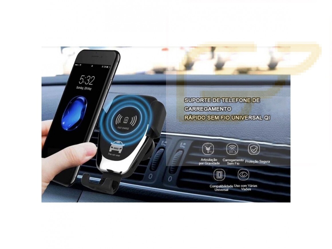 O suporte pode ser fixado no vidro ou painel do veículo. É prático, fácil de usar e conserva por muito mais tempo os conectores do seu Smartphone.