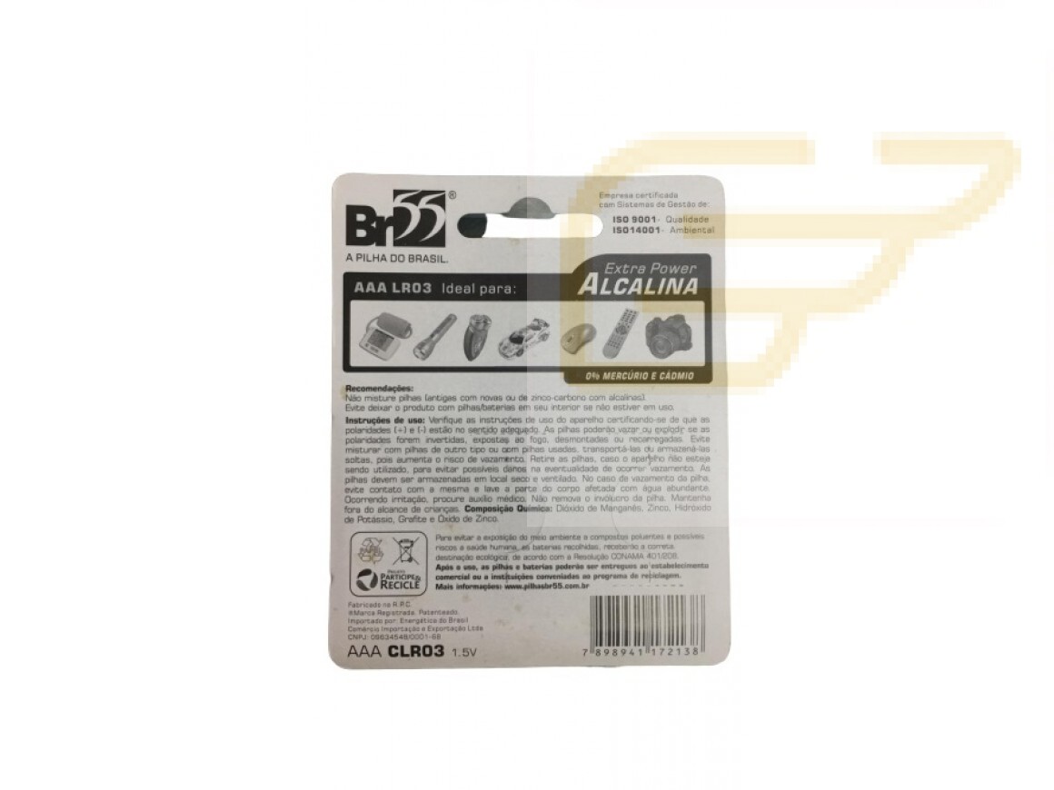 CARTELA COM 4 PILHAS +1 BR55 ALCALINA AAA PALITO CLR03