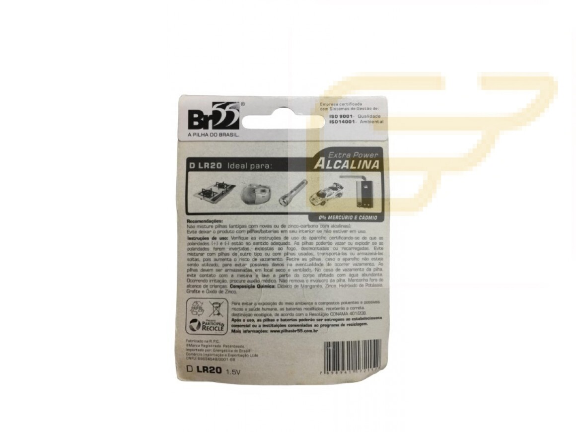 CARTELA COM 2 PILHAS BR55 ALCALINAS GRANDES D LR20