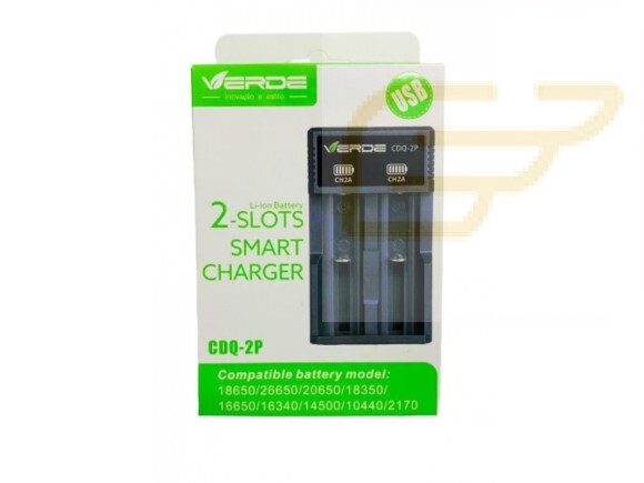 CARREGADOR DE PILHAS 2 SLOTS 2A OU 3A VERDE CDQ-2P