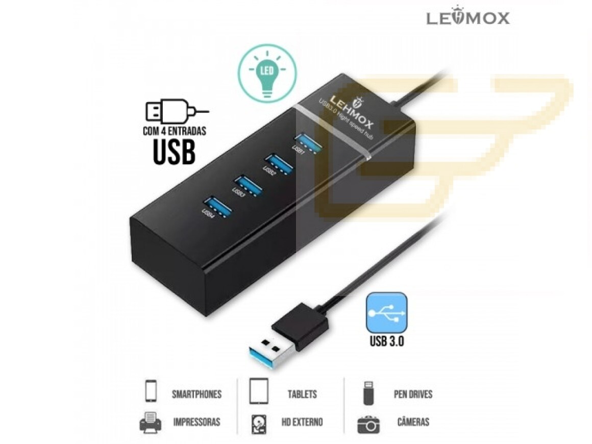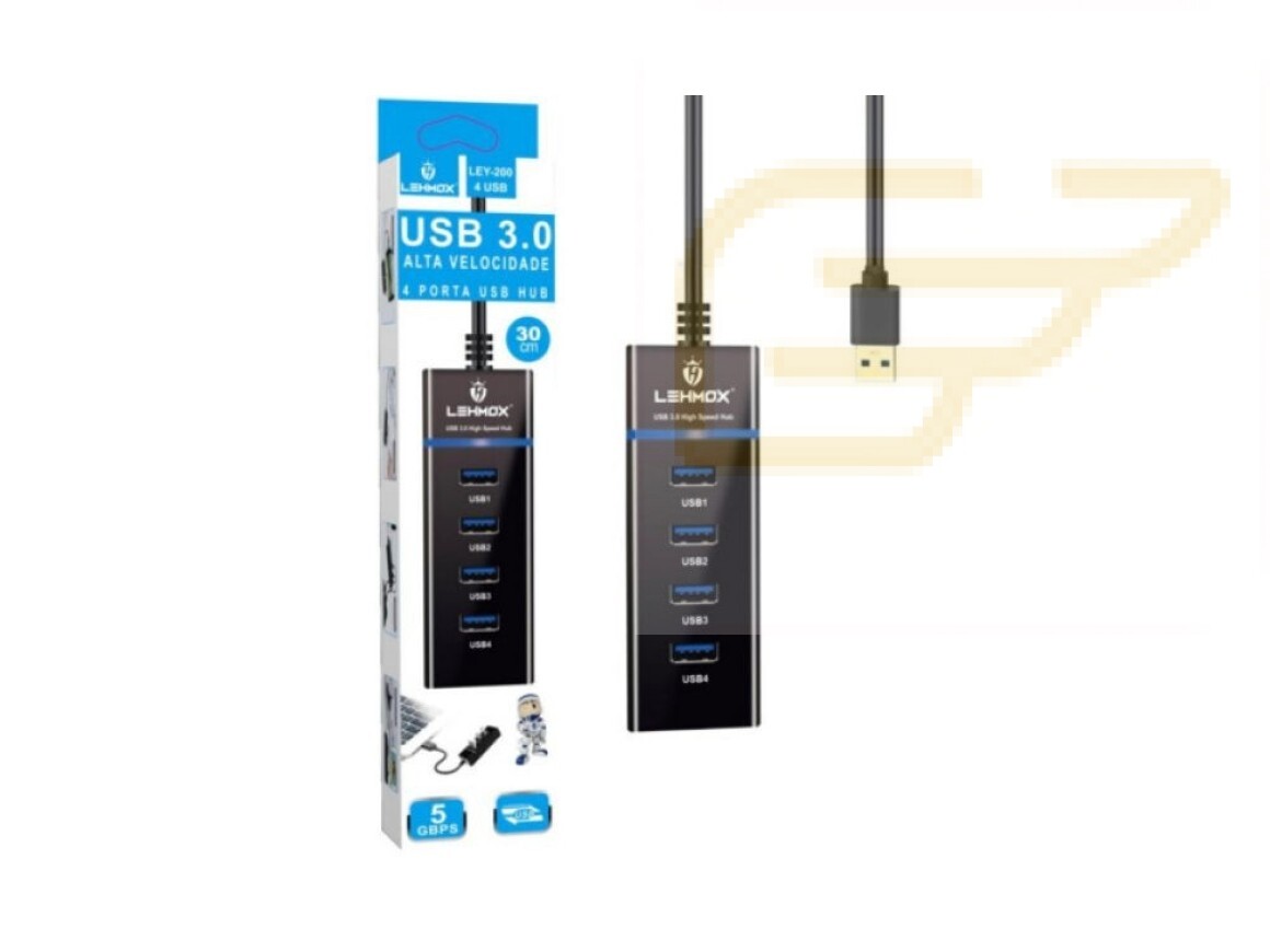 Hub Usb 3.0 4 Portas 5 Gbps Lehmox - LEY-200 Hub Usb 3.0 Lehmox 4 Portas Ley-200 Novo Hub 3.0 Com 4 Portas Super Speed5 Gbps e Led indicativo.