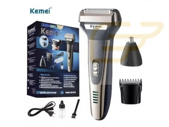 Aparelho de Barbear 3 em 1 Kemei KM-6776 Shaver bivolt Recarregável Original Maquina de Cortar Cabelo, Barbeador Elétrico, Aparador de Pelos, Máquina de barbear, Recarregável, Bivolt, Kemei 3 em 1. Modelo aerodinâmico e design ergonômico, este produto é uma máquina de cortar cabelo, barbeador e aparador de pelos recarregável. O barbeador possui duas cabeças de corte flutuantes, com sistema de ação individual. A cabeça shaver é ideal para pessoas que tenham alergia a lâmina da Gillette ou a navalha, que é um método muito agressivo, com o shaver não vai causar essa irritação. – Lembrando que antes de usar o shaver é necessário passar uma máquina zero para cortar os pelos, depois vem o shaver. Ele não deve ser utilizado em pelos grandes. – Após raspar os pelos no zero, com a parte de cortar cabelo. Você usará o shaver a parte que tem duas lâminas para poder aparar os pelos e deixar liso como se fosse gillete. – Para efetuar a troca das cabeças do barbeador elétrico, basta girar a cabeça, no sentido ANTI-HORÁRIO, e para encaixa-lo novamente girando no sentido HORÁRIO.– Para recarregar deixe por 8 horas (Recomendado pelo fabricante).– Mantenha as lâminas sempre lubrificadas.– Alguma dúvida no uso do aparelho estou a disposição, utilize o campo de perguntas. Características:– Marca: Kemei– Modelo Número: KM-6776– Alimentação: Recarregável– Característica: Lâmina dupla– Utilização: Corpo, Barba, Bigode, Cabelo– Tempo de uso: Até 60 Minutos– Tempo de Carga: 8 horas– Tensão: Bivolt (100 – 240V) – Potencia nominal: 3W– Material: ABS + Stainless Steel– Tamanho: 16cm x 3cm– Tipo de Item: Barbeador Elétrico, Aparador de Pelos e Cortador de Cabelos.