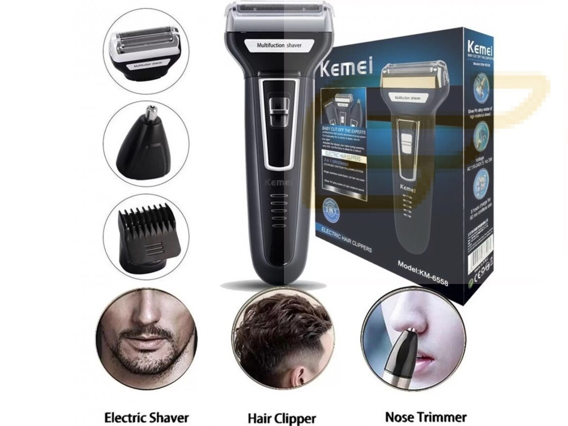 Máquina De Barbear, Cortar Cabelo, Aparador Elétrico, Kit De Pelos 3 Em 1 - Kemei