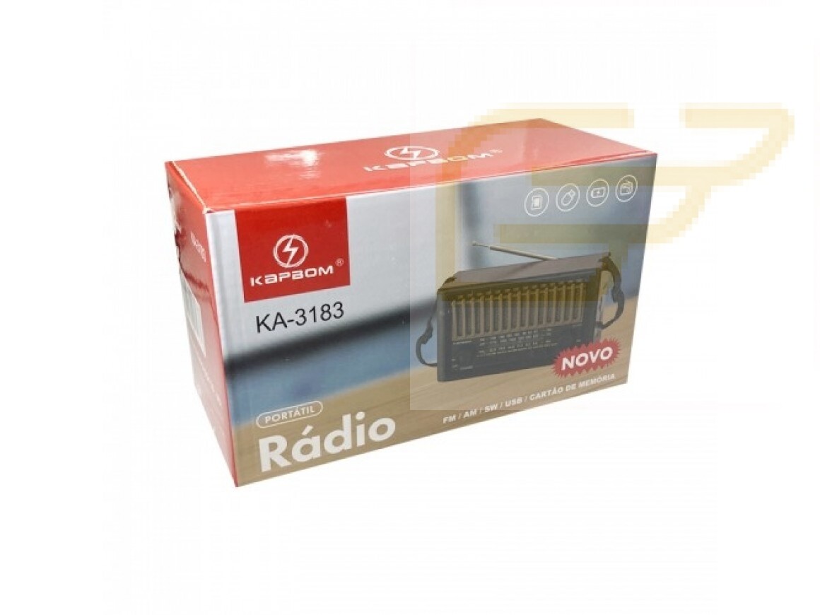 O caixa de som retrô vem com: AM/FM/SW, entrada para cartão de memória, entrada USB (pen drive) e Bluetooth.