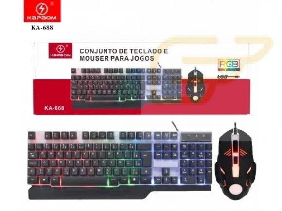O kit teclado e mouse rgb ka-688 teclado iluminado (rgb) é