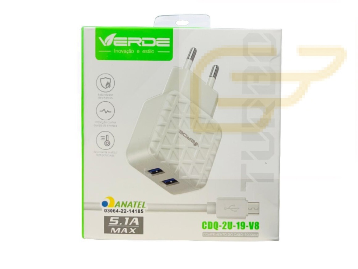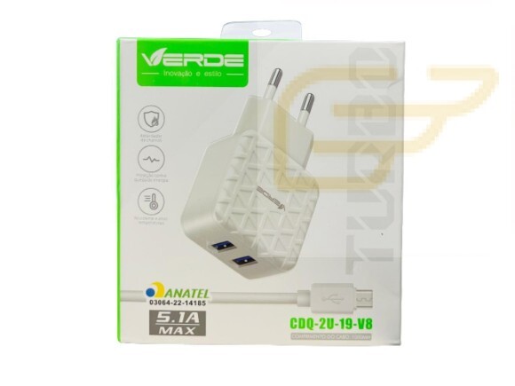 CARREGADOR MICRO USB 5.1A MAX VERDE CDQ-2U-19-V8