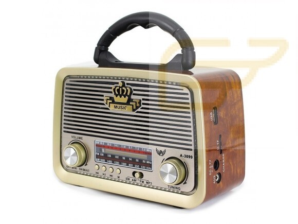Radio Retro Vintage Portátil com entrada USB e Cartão SD e AM/FM com bateria recarregável.