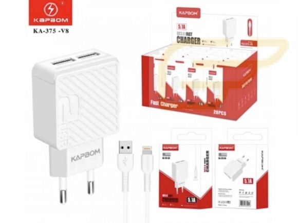 CARREGADOR 2USB LIGHTNING 5.1A KAPBOM KA-375-5G