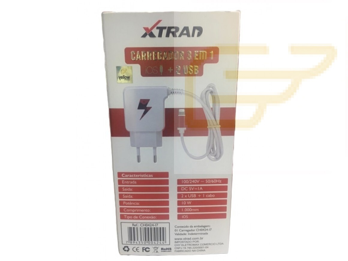CARREGADOR PARA CELULAR 3 EM 1 XTRAD LIGHTNING CH 0424-I7