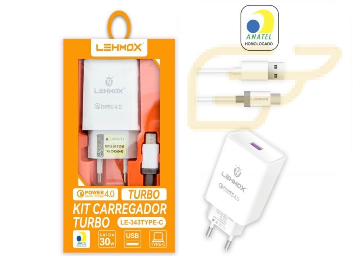 CARREGADOR USB TIPO C TURBO 30W LEHMOX LE-343TYPEC