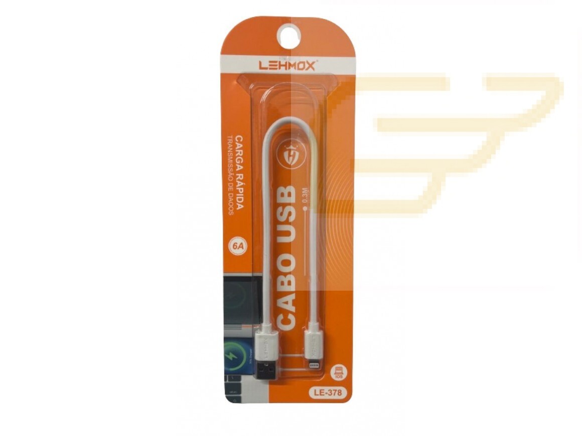 CABO USB LIGHTNING 30 CM CARGA RAPIDA 6A LEHMOX LE-378