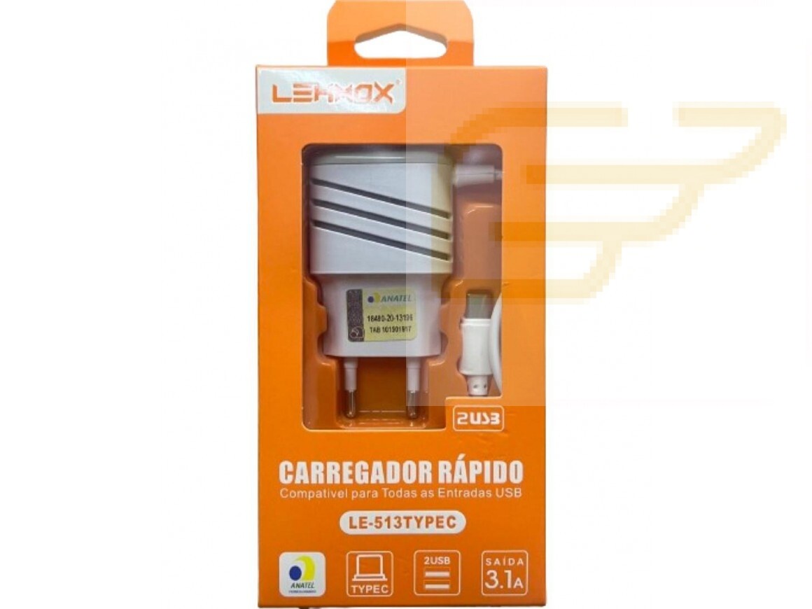 CARREGADOR RAPIDO TIPO C 2USB 3.1A LEHMOX LE-513TYPEC