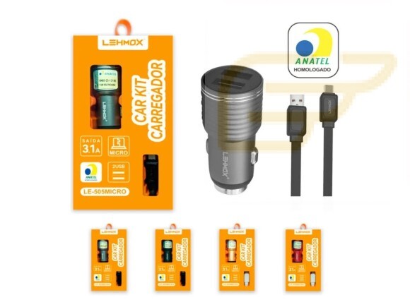 CARREGADOR VEICULAR 2USB COM CABO MICRO 3.1A LEHMOX LE-505MICRO