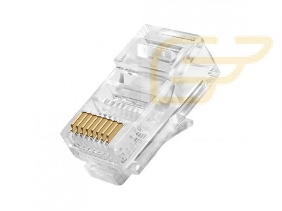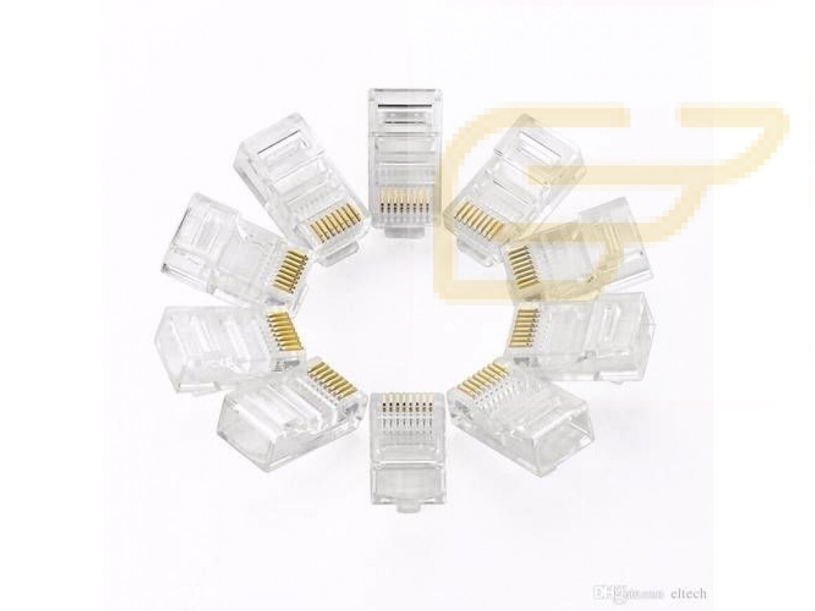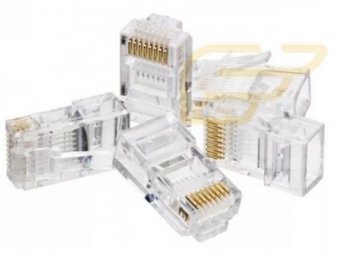 Conector Rj45, para cabo de rede Cat 5, utilizado em e cabeamento estruturado, cabeamento horizontal ou secundário, uso interno, em sala de telecomunicações e pontos de distribuição ou em pontos de acesso na área de trabalho.