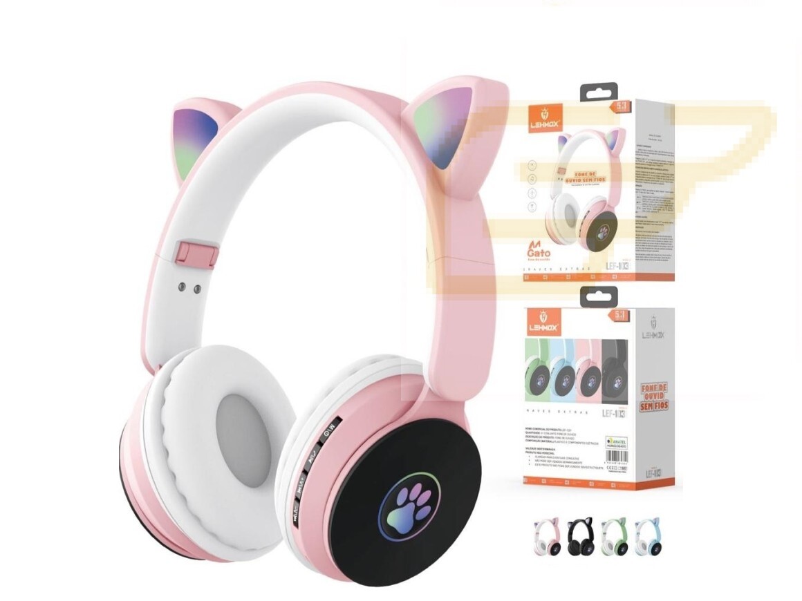 FONE DE OUVIDO BLUETOOTH GATINHO LED COLORIDO RGB