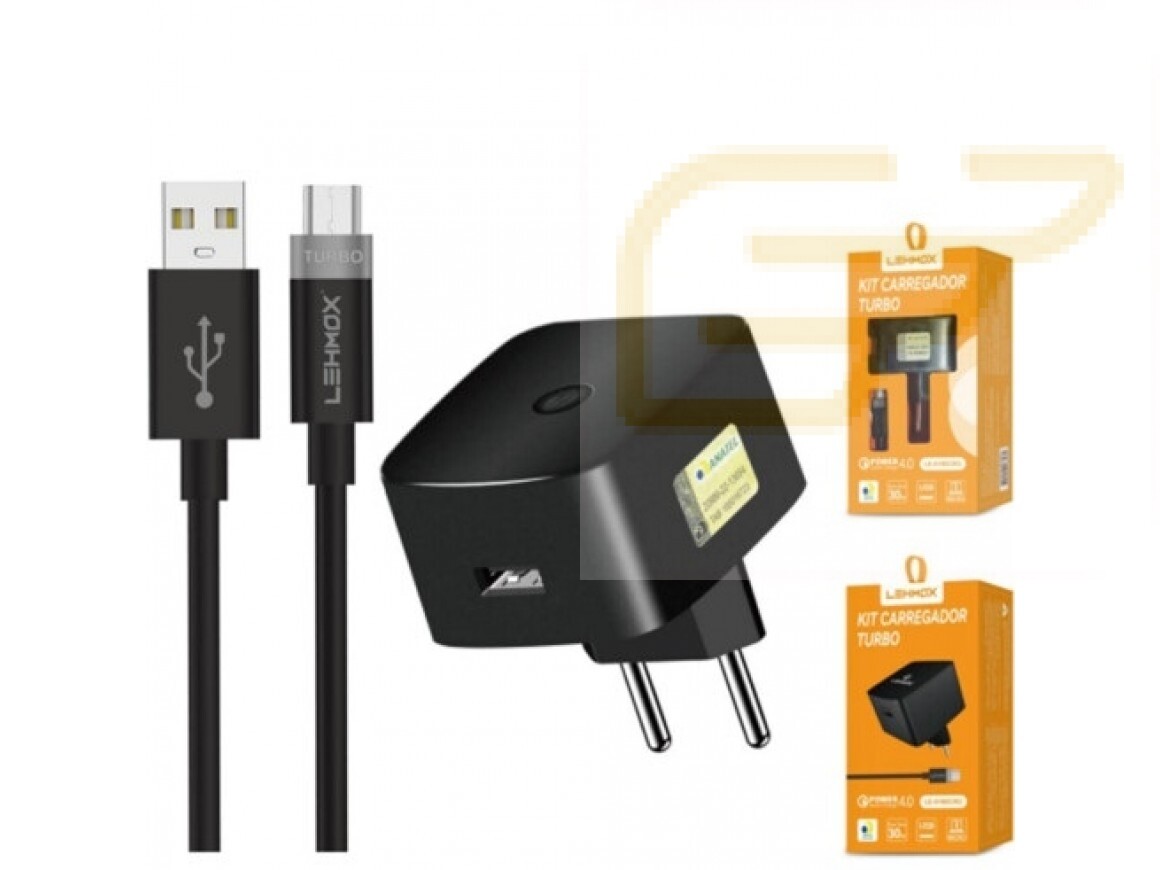 CARREGADOR TURBO 30W COM CABO USB V8 LEHMOX LE-91-2