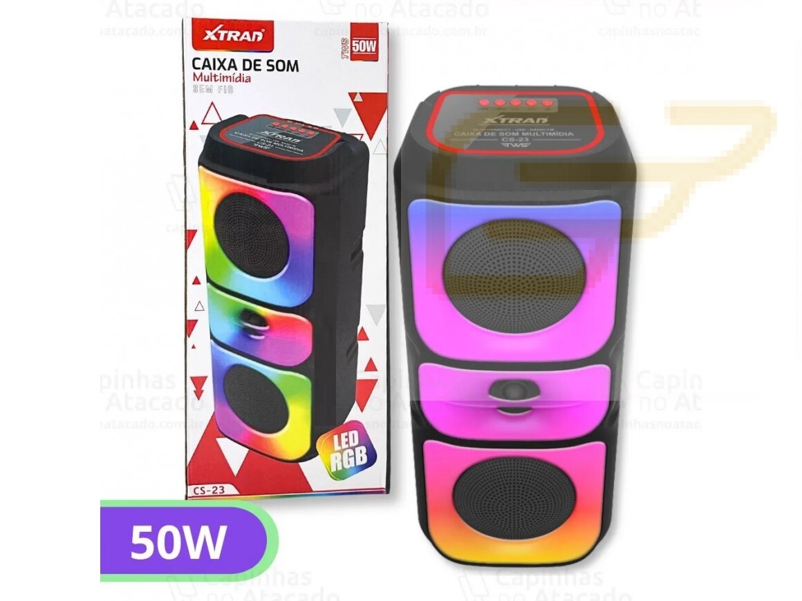 CAIXA DE SOM SEM FIO COM LED RGB 50W XTRAD CS-23