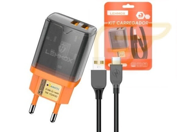 CARREGADOR RAPIDO 2 USB COM CABO TIPO C 4.1A LEHMOX LE-489-4