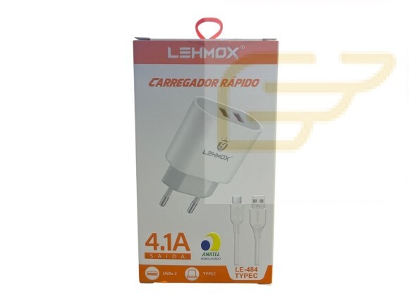 CARREGADOR RAPIDO 2 USB 4.1A TIPO C LEHMOX LE-484TYPEC