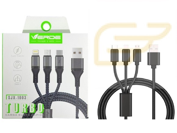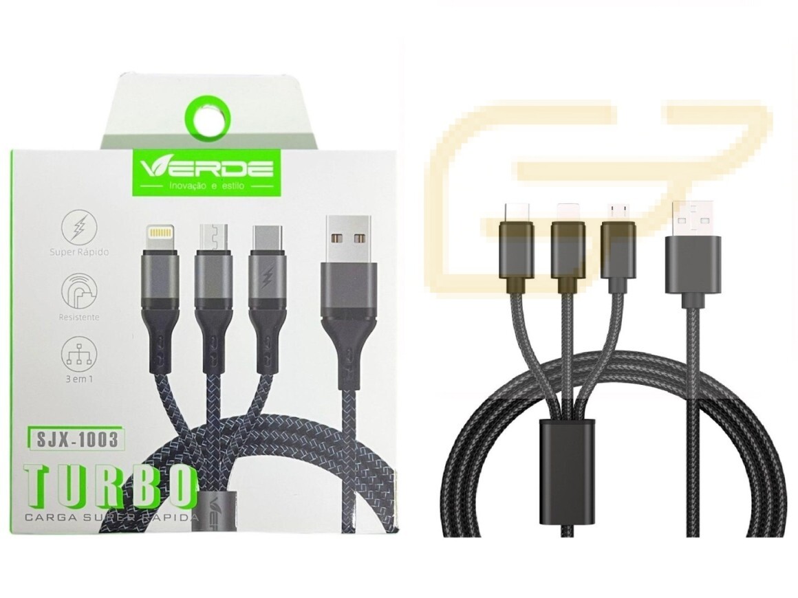 CABO DE CARREGAMENTO TURBO 3 EM 1 VERDE SJX-1003