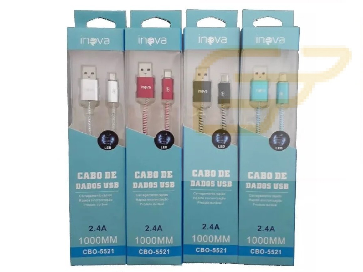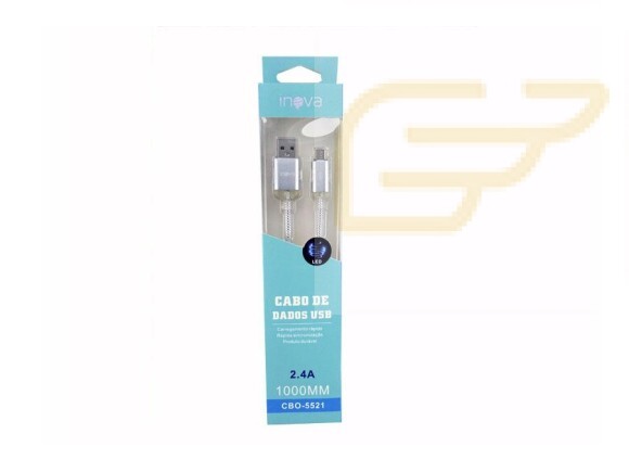 Cabo De Dados Premium Reforçado Micro USB V8 Cinza Com LED CBO-5521 - Inova,