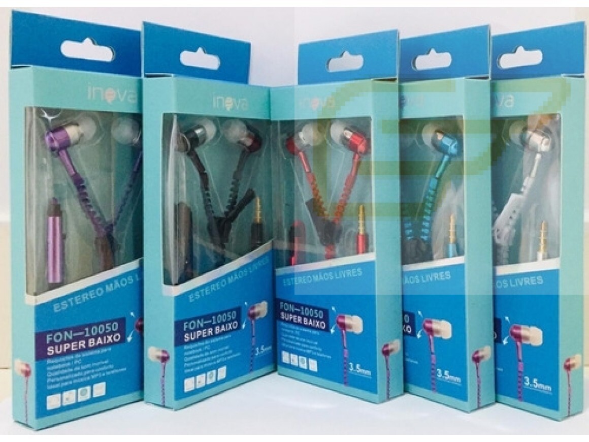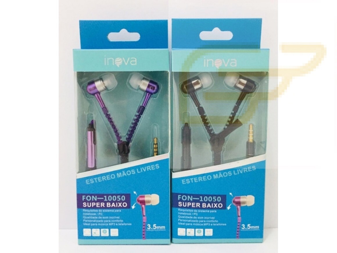 Fone de Ouvido com Microfone Formato Zíper Inova Fon-10050