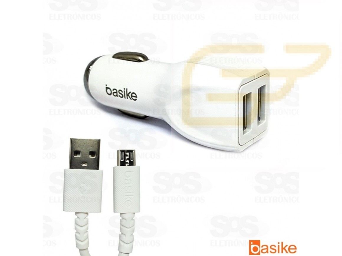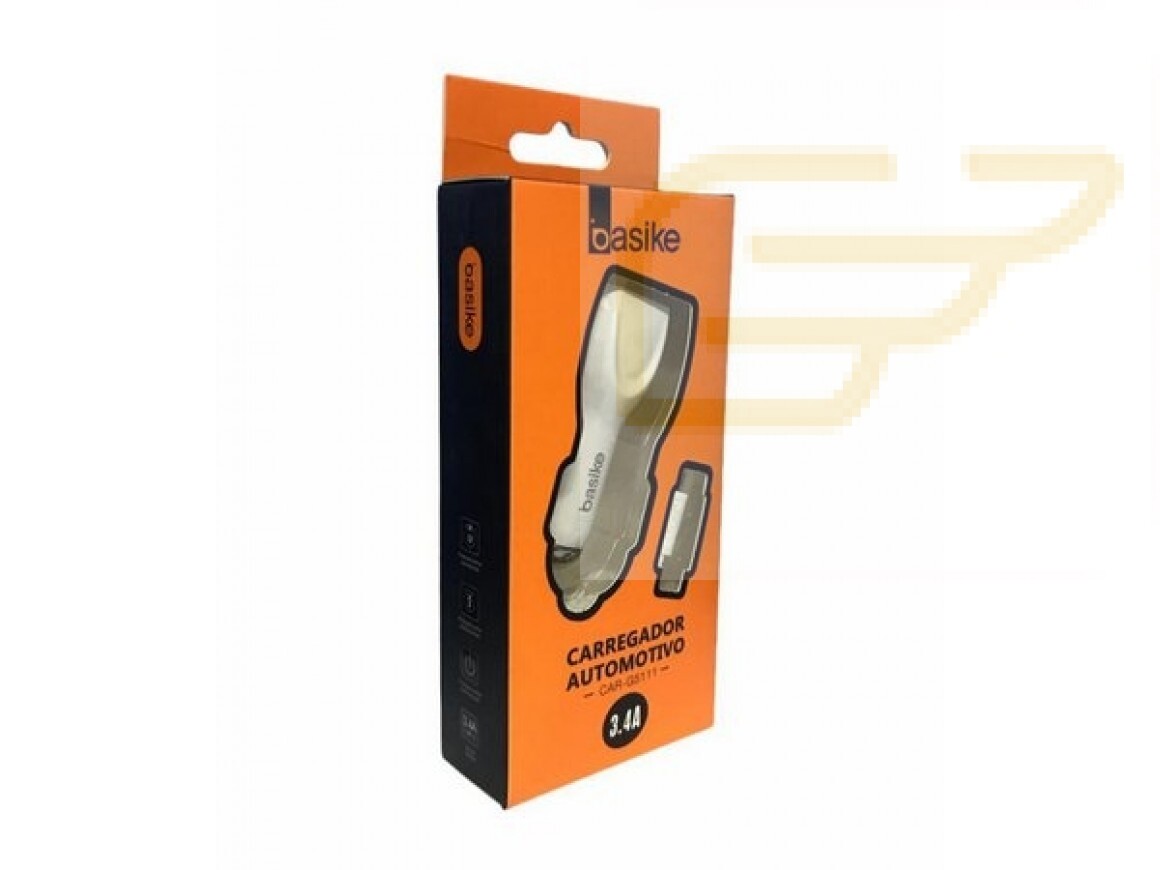 CARREGADOR VEICULAR 2 PORTAS USB COM CABO V8 BASIKE CAR-G5111