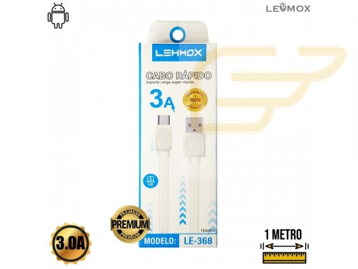 O cabo micro USB pode ser usado para sincronismo de dados e recarga elétrica em aparelhos smartphones e tablets com sistema Android. A conexão micro usb é conhecida também como cabo v8 e pode atingir velocidade de transmissão de dados de 480Mb/s.