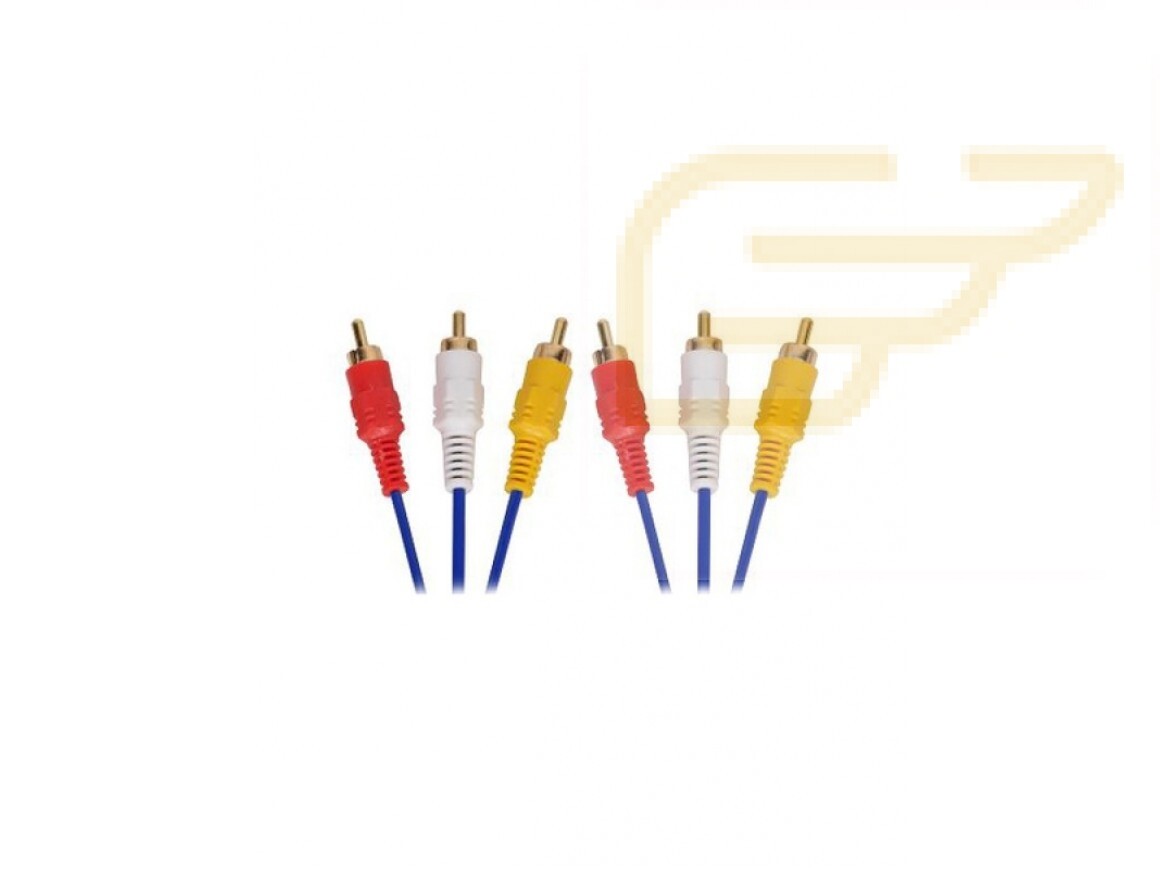 Cabo AV audio e video com conectores RCA 3x3 (branco amarelo vermelho). O cabo é blindado proporcionando uma imagem de qualidade, perfeita e sem ruidos. Ideal para sistemas de áudio e vídeo.