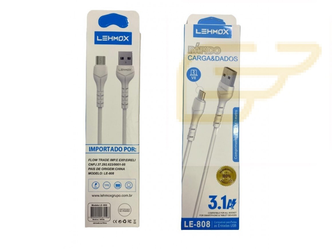 CABO DE DADOS MICRO USB 3.1A 1M LEHMOX LE-808