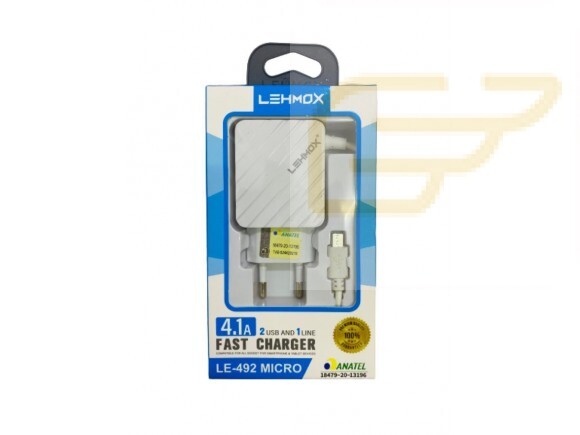 CARREGADOR MICRO USB V8 FAST CHARGER 4.1A 2USB LEHMOX LE-492