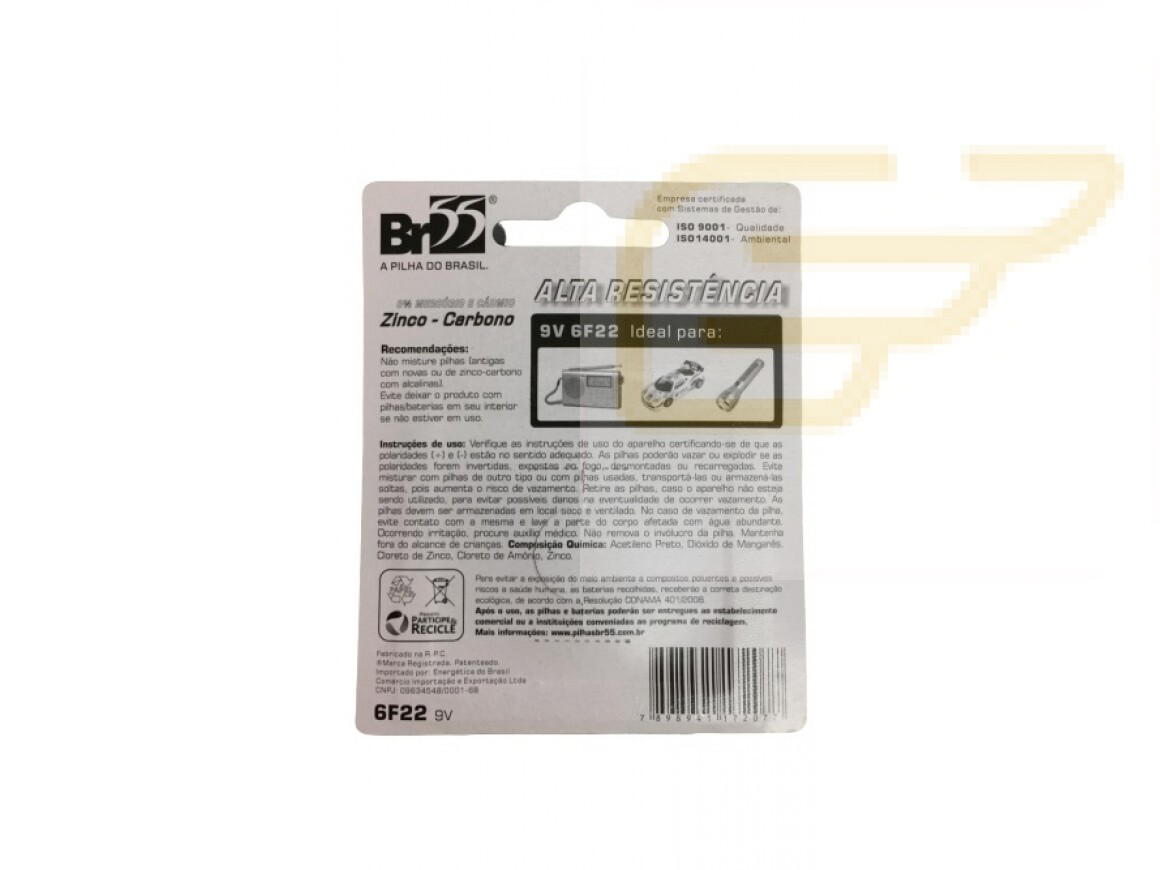 CARTELA COM UMA BATERIA BR55 COMUM 9V 6F22