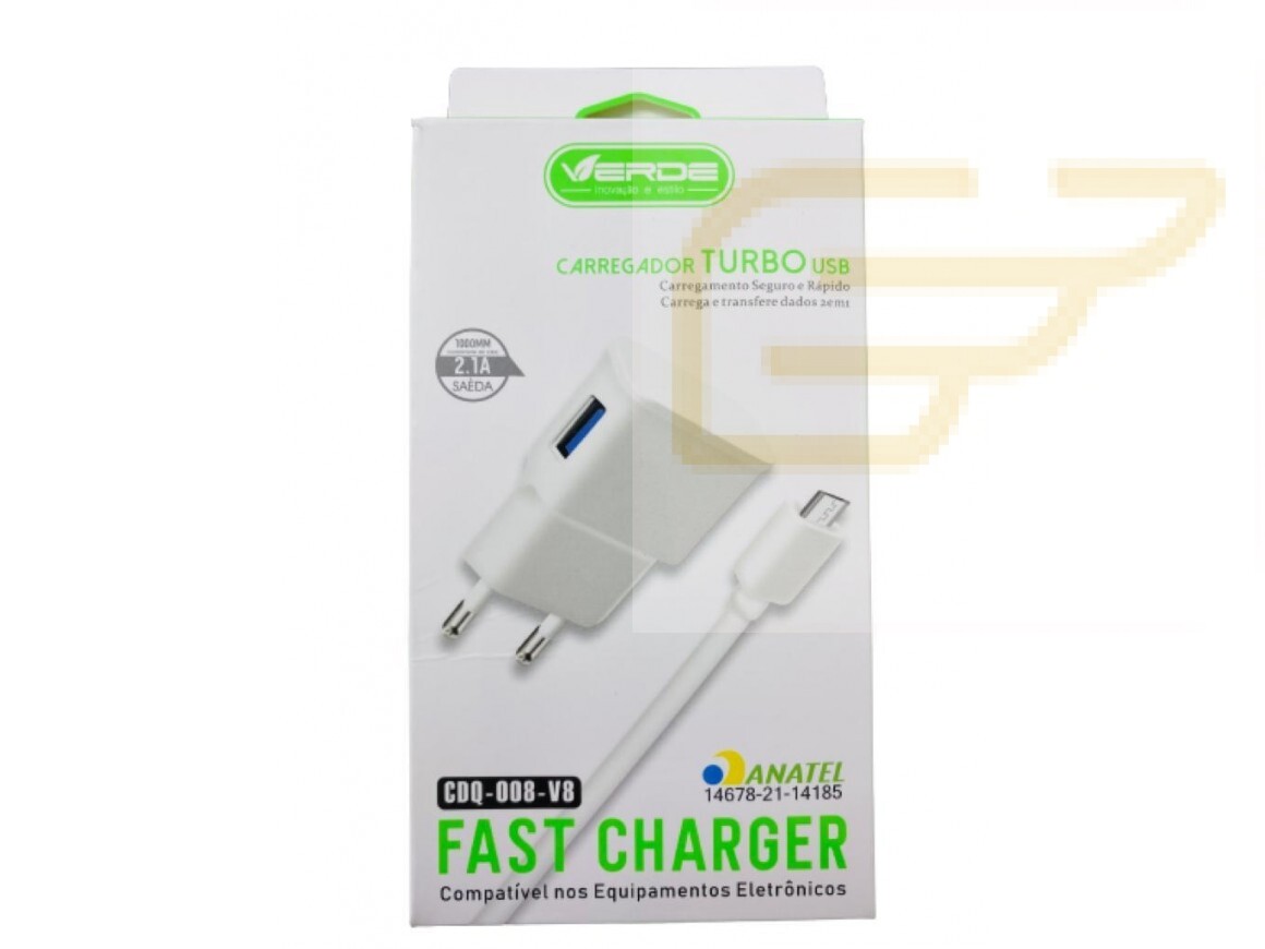 CARREGADOR MICRO USB TURBO VERDE CDQ-008-V8