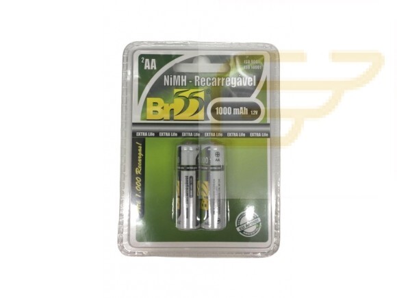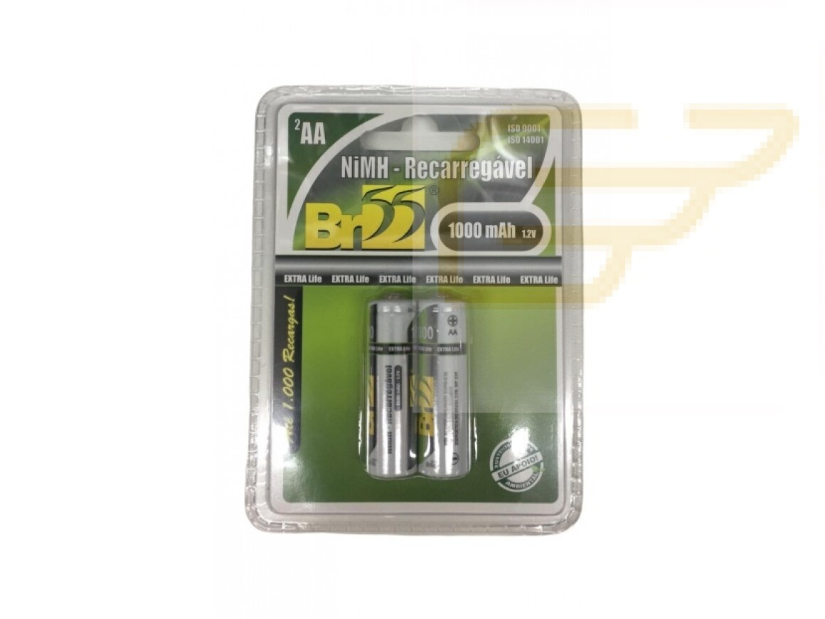 CARTELA COM 2 PILHAS BR55 RECARREGAVEIS PEQUENAS AA 1000MAH