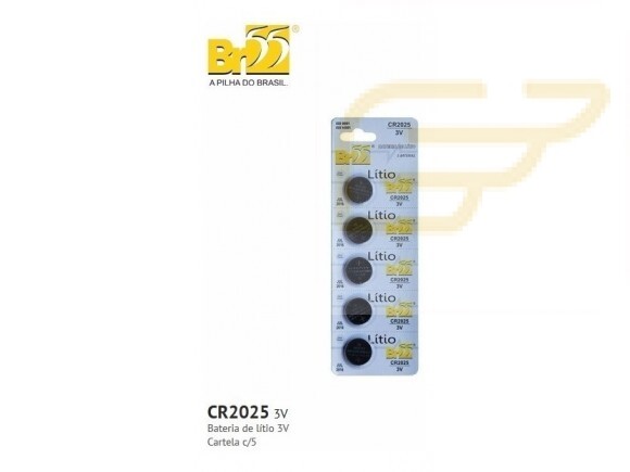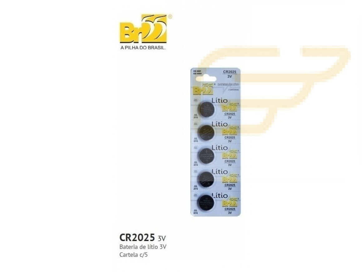CARTELA COM 5 BATERIAS BR55 DE LITIO BOTAO 3V CR2025